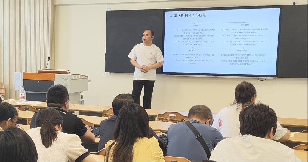 报告中,王宏健老师系统介绍了科研期刊的分类标准,并围绕论文写作的排版规范与效率提升展开详细讲解。王老师结合实例,分享了常见排版工具的高效使用技巧,强调格式规范对学术成果展示的重要性,同时就如何兼顾效率与规范性提出了实用建议。参会教师积极互动,就科研写作中的实际问题进行了深入交流。